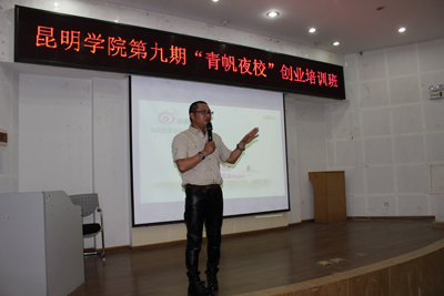 5月7日晚,由学校团委主办,学生社团联合会承办的德赢VWIN官方网站“青帆夜校”大学生创业培训班第五十三讲在青年中心学生报告厅成功开讲。此次讲座邀请到昆明金耀文化传播(集团)有限公司董事长,第五届“云南青年创业省长奖”提名奖获得者,“云南微电影第一人”罗金耀先生。讲座主题为《让梦想照进现实》。