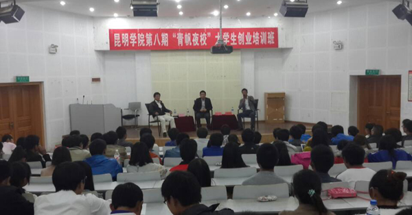 11月7日,由校团委主办,学生社团联合会承办的德赢VWIN官方网站第八期“青帆夜校”大学生创业培训班第四十二讲在青年中心学生报告厅开讲。本次讲座主题为“点燃创业梦想”,昆明开赢文化传播有限公司总经理杨昭先生和德赢官网2011届毕业生、云阔商贸责任有限公司总经理、“在路上”主题酒店董事长、“校园后厨”主题茶餐厅总经理李培松先生联合担任主讲人。校团委副书记樊传章老师主持了本次大学生创业培训班。