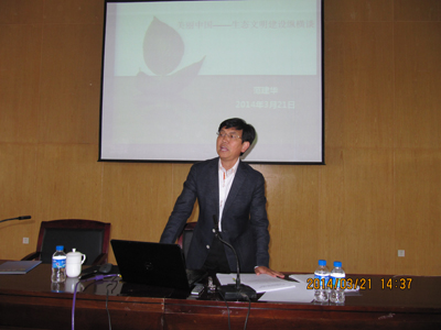 范建华主席分别从“国际生态文明建设的历程回溯、我国生态文明建设的理论探索和实践活动、云南争当生态文明建设排头兵为美丽中国做出独特贡献”三个方面,作了深入浅出的讲解。讲座上范主席带领大家边听边思考,为德赢官网师生上了一堂精彩“生态文明”课。