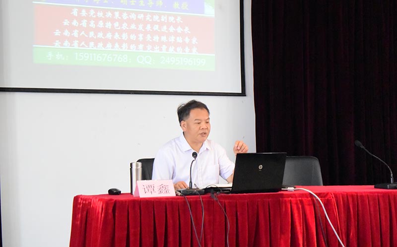 谭鑫教授从云南乡村振兴战略的构想提出、云南乡村振兴战略存在的问题、云南乡村振兴战略的发展建议等来分析论证云南乡村振兴战略。谭鑫教授提到任何重大决策要有“五定”:定方向、定思路、定目标、定任务、定要求,要有“六变”;云南乡村振兴战略存在的主要问题有乡村空心化、人口老龄化、城乡融合发展不够、农业科技意识差等问题、乡村治理体系差、公共服务差三农发展不均衡等;最后谭鑫教授指出,要用“一个最终目的、二个关键、三个治理、四个优先、五干、六点”来解决上述问题。谭鑫教授的讲座内容丰富、资料翔实、图文并茂、专业性强,为德赢官网师生上了一堂既有严谨的学术性,又有利于指导大学生今后就业的实用性讲座。