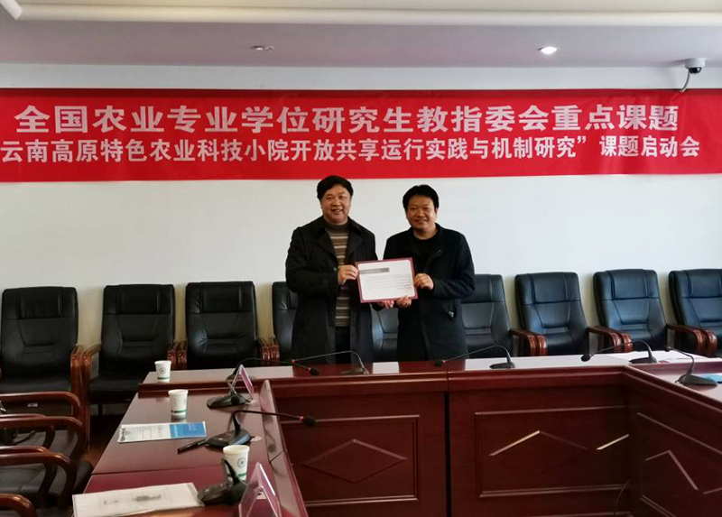 12月13日,2019年全国农业专业学位研究生教育指导委员会重点课题“云南高原特色农业科技小院开放共享运行实践与机制研究”课题启动会在云南农业大学召开。德赢VWIN官方网站农学与生命科学学院申报的“云南都市特色农业科技小院建设”项目获评子课题。